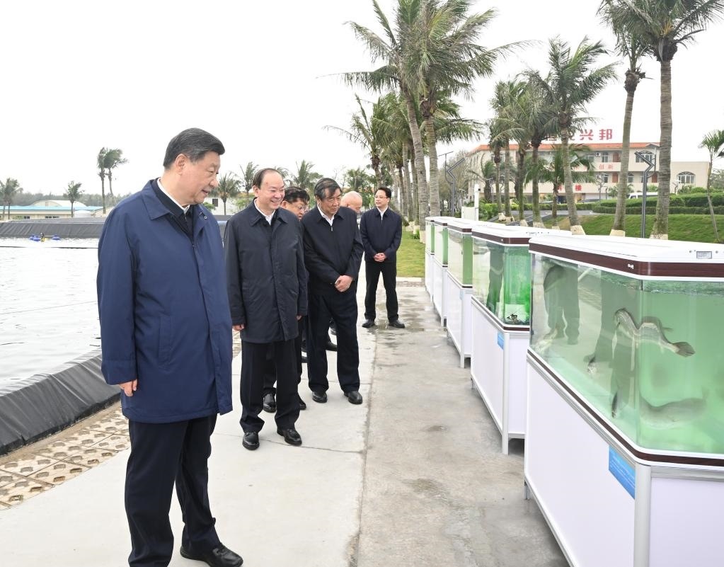 這是習近平總書記4月10日在廣東省湛江市國家863計劃項目海水養(yǎng)殖種子工程南方基地了解當?shù)匕l(fā)展海洋漁業(yè)情況。新華社記者 李學仁 攝