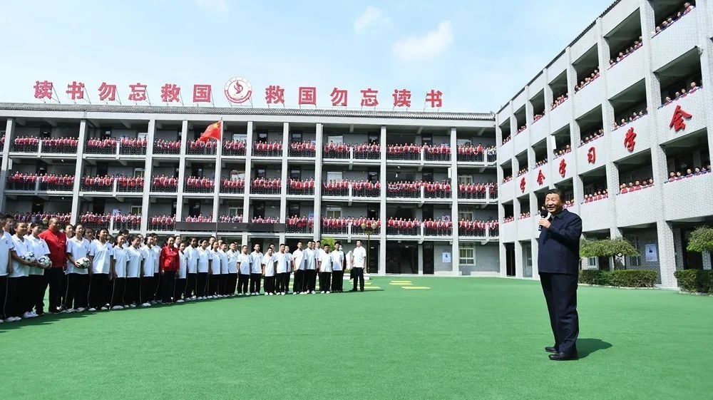 2021年9月14日,在陜西榆林市綏德實(shí)驗(yàn)中學(xué)考察時(shí),習(xí)近平總書記走進(jìn)教室、操場,觀看同學(xué)們書法練習(xí)和體育鍛煉,同大家親切交流。他勉勵(lì)同學(xué)們:“真正做全面發(fā)展的人才,一步一步地走下去,最終都能成為對社會(huì)有用的人、國之棟梁?!薄暗轮求w美勞全面發(fā)展,字字千金,都是經(jīng)過多年總結(jié)摸索才得出來的?!?/p>