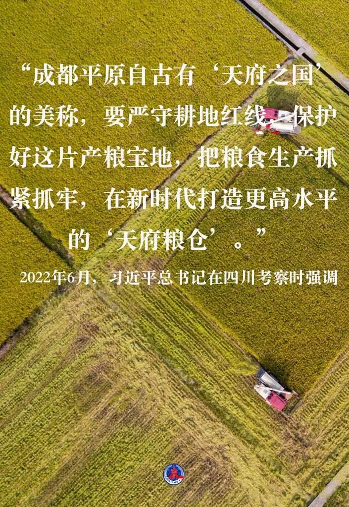 2022年6月,習(xí)近平總書記在四川考察時強調(diào),“成都平原自古有‘天府之國’的美稱,要嚴(yán)守耕地紅線,保護(hù)好這片產(chǎn)糧寶地,把糧食生產(chǎn)抓緊抓牢,在新時代打造更高水平的‘天府糧倉’”。