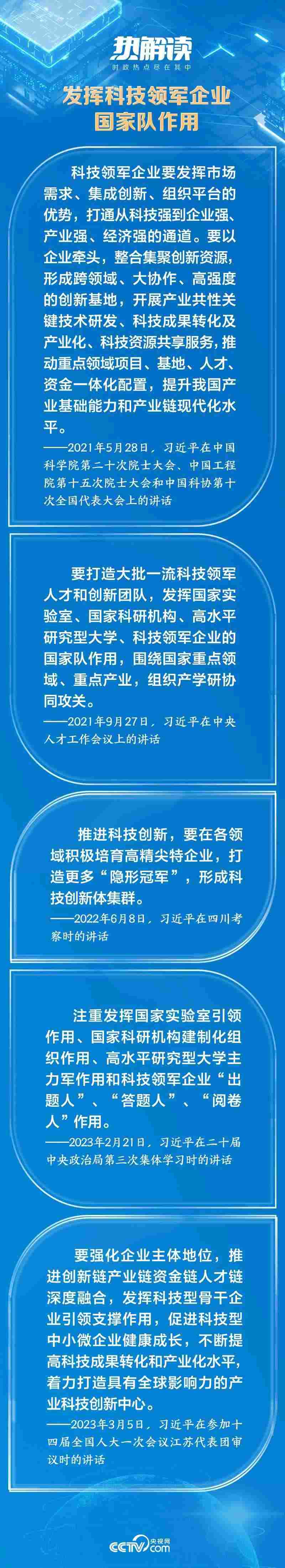 企業(yè)是市場(chǎng)的主體,是推動(dòng)科技創(chuàng)新的生力軍。作為國家戰(zhàn)略科技力量的重要組成部分,總書記對(duì)科技領(lǐng)軍企業(yè)更是寄予厚望:“要自覺履行高水平科技自立自強(qiáng)的使命擔(dān)當(dāng)”,要注重發(fā)揮“科技領(lǐng)軍企業(yè)‘出題人’、‘答題人’、‘閱卷人’作用”。