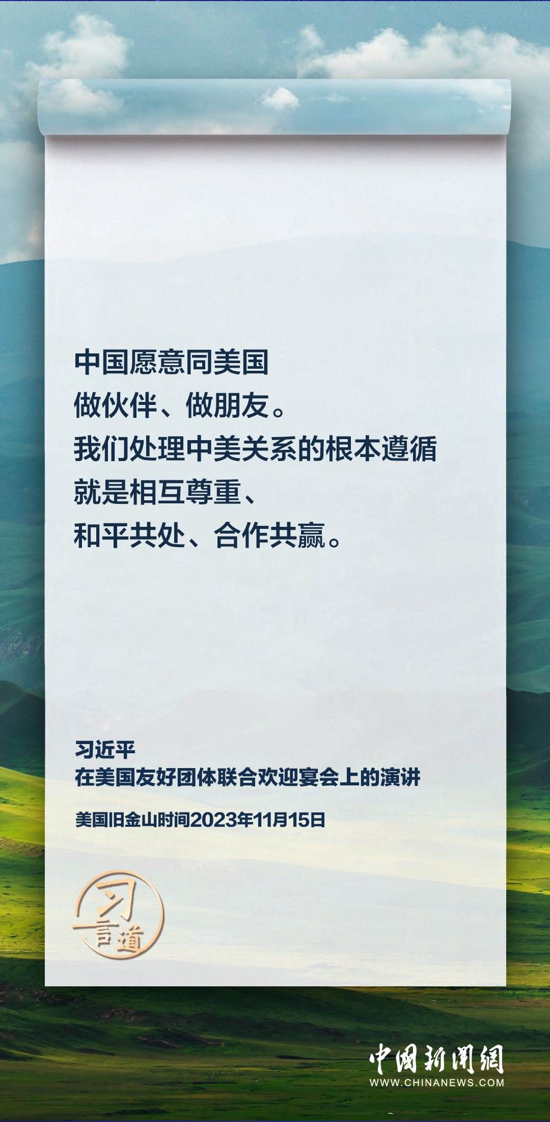 當(dāng)?shù)貢r(shí)間11月15日,中國國家主席習(xí)近平在美國舊金山出席美國友好團(tuán)體聯(lián)合歡迎宴會(huì)并發(fā)表演講。習(xí)近平在演講中從“我”和“我們”說起,提出中國主張、表明中國立場、展現(xiàn)大國擔(dān)當(dāng),話語擲地有聲。