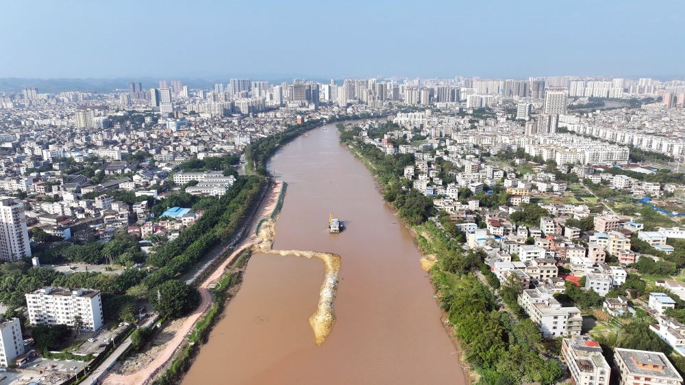 這是11月25日拍攝的平陸運(yùn)河途徑欽州市區(qū)的航道(無(wú)人機(jī)照片)。新華社記者 張愛(ài)林 攝