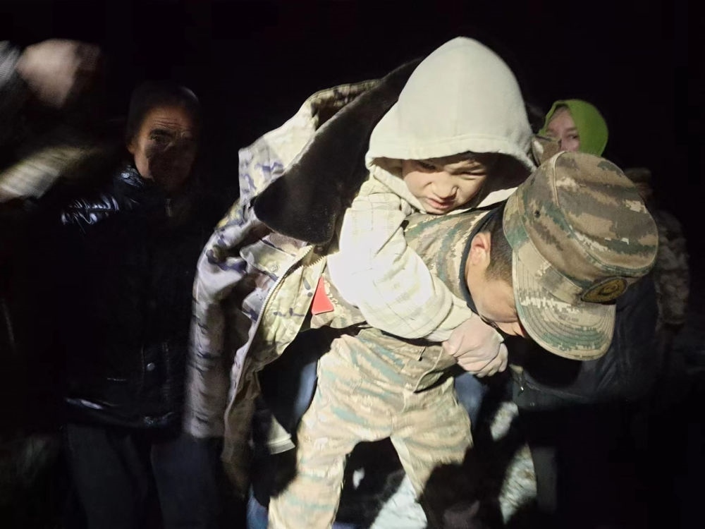 2023年12月19日,武警甘肅總隊(duì)臨夏支隊(duì)官兵在甘肅省臨夏回族自治州積石山縣劉集鄉(xiāng)陽(yáng)屲村展開救援。新華社發(fā)(侯崇慧 攝)