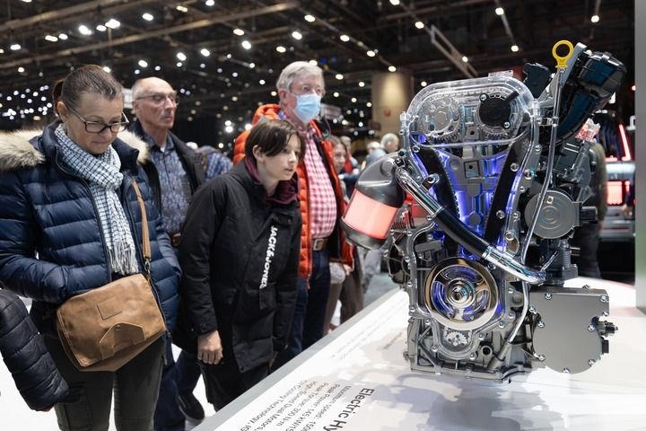 △觀眾在瑞士舉行的2024年日內瓦國際車展上參觀比亞迪新款發(fā)動機。