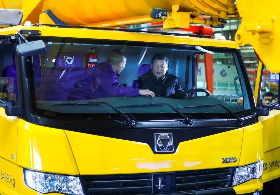 △2017年12月12日,習近平總書記在江蘇徐州徐工集團坐進剛下線的XCA220型全地面起重機駕駛室,向技術人員詳細詢問起重機的性能、產量、價格等。