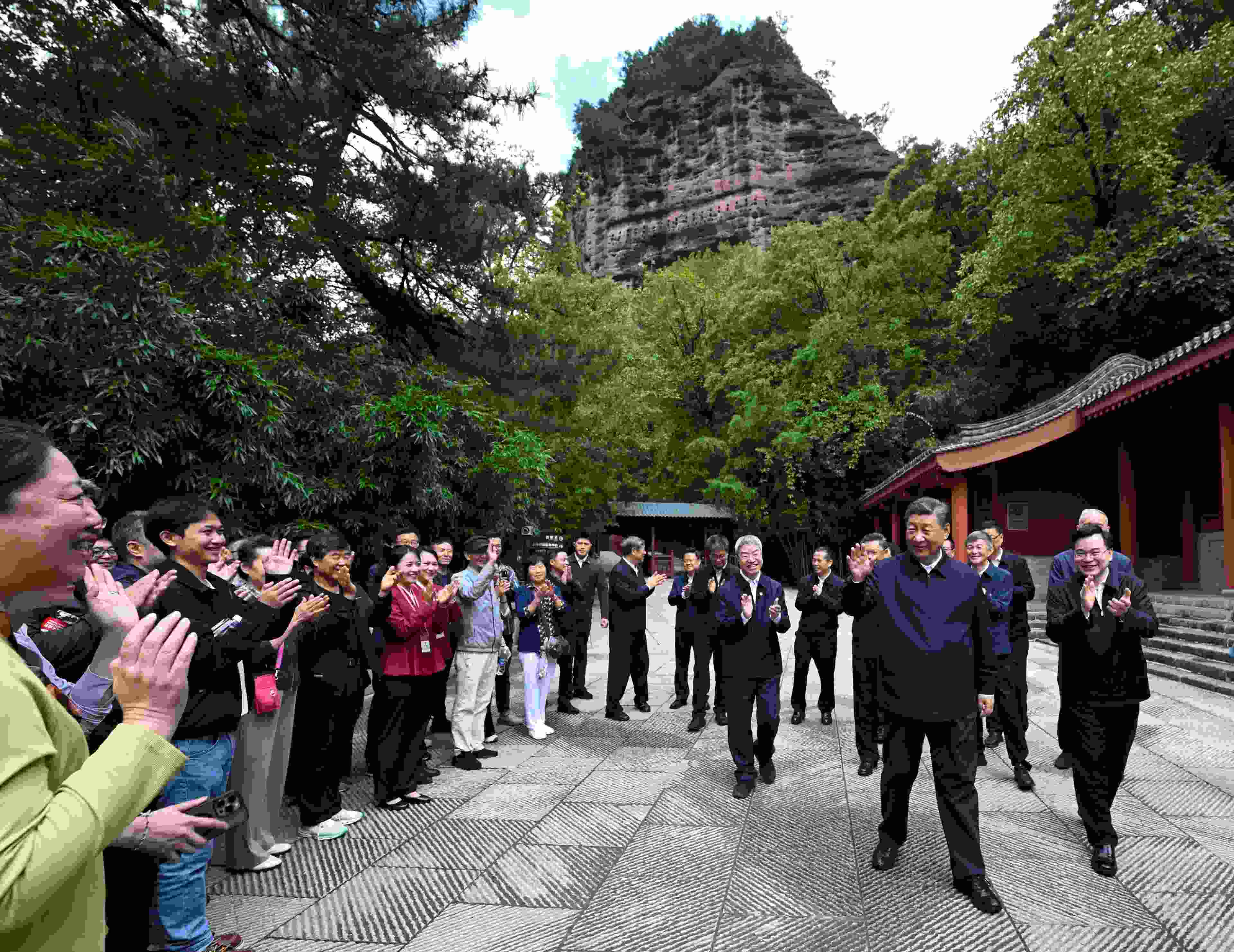 10日下午至11日上午,習(xí)近平總書記先后來到陜西省寶雞市和甘肅省天水市考察調(diào)研。在寶雞市,習(xí)近平考察了寶雞青銅器博物院、渭河生態(tài)公園,了解當?shù)丶訌娢奈锉Wo利用和開展渭河生態(tài)保護治理等情況。在天水市,習(xí)近平考察了伏羲廟、麥積區(qū)南山花牛蘋果基地、麥積山石窟,了解當?shù)赝苿游幕z產(chǎn)保護傳承、發(fā)展特色現(xiàn)代山地果業(yè)等情況。