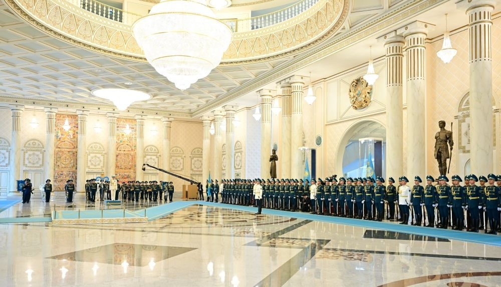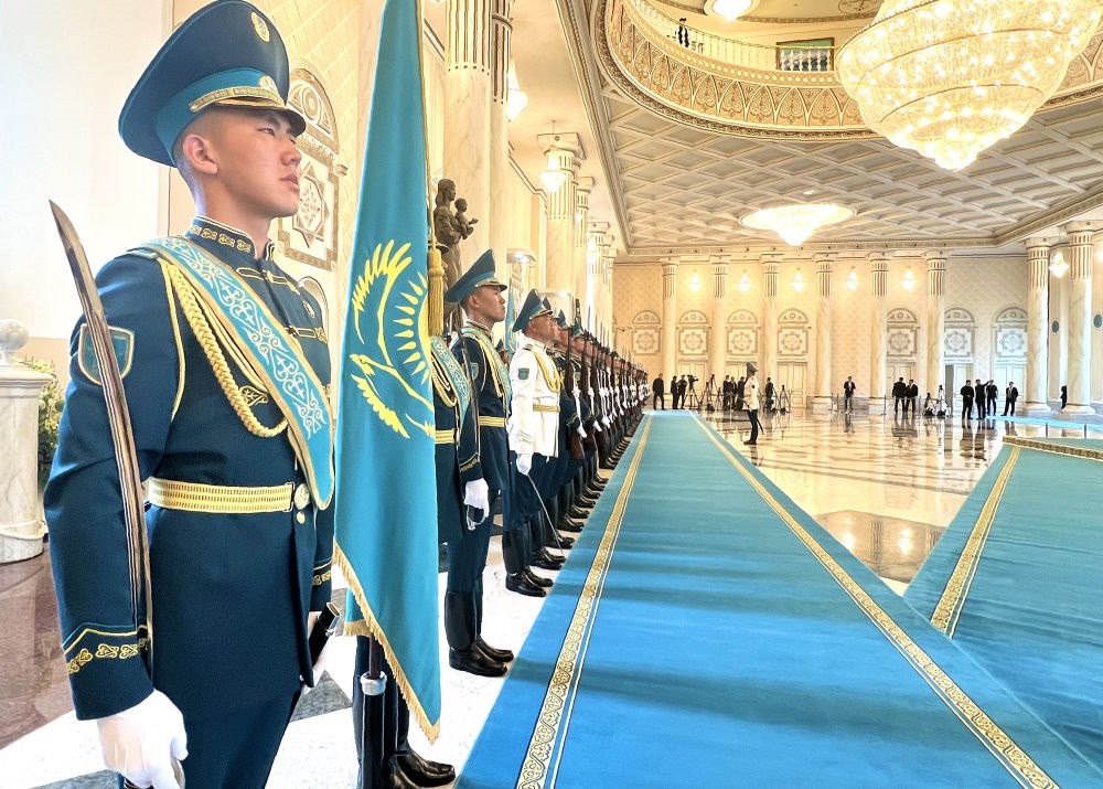 當(dāng)?shù)貢r(shí)間3日,國家主席習(xí)近平在阿斯塔納出席哈薩克斯坦總統(tǒng)托卡耶夫舉行的歡迎儀式。