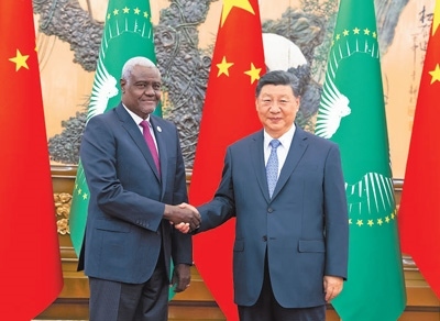 9月3日上午,國家主席習近平在北京人民大會堂會見來華出席中非合作論壇北京峰會的非盟委員會主席法基。新華社記者 黃敬文攝
