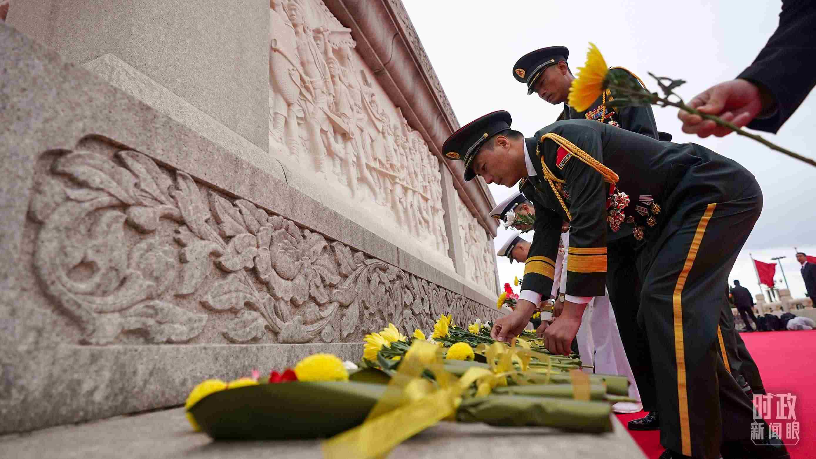 正逢新中國成立75周年,今年參加儀式的人數(shù)規(guī)模有所增加?!稌r(shí)政新聞眼》現(xiàn)場(chǎng)了解到,相較去年,人民英雄紀(jì)念碑基座上增加了4名禮兵。今年參加儀式的各界代表增至2400多名。