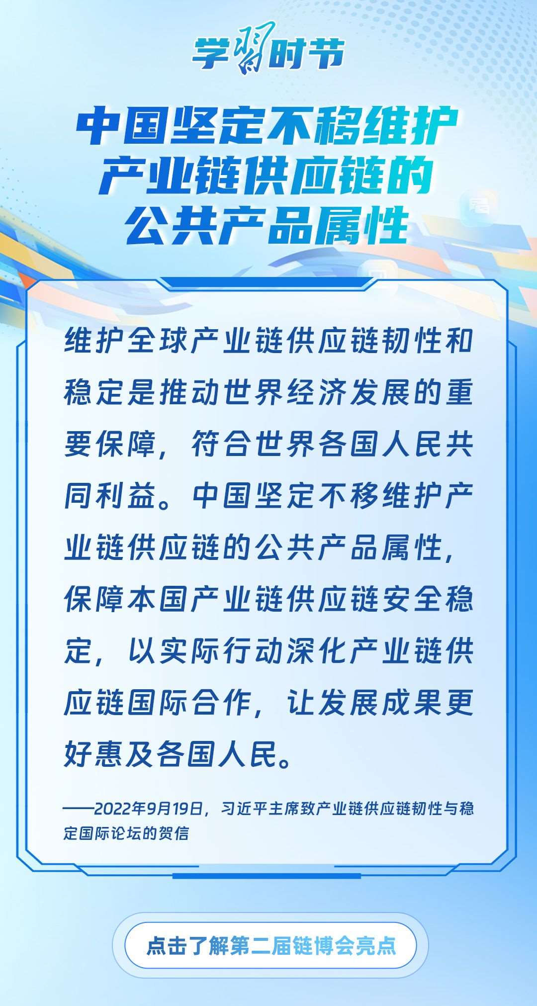 習近平主席心系產業(yè)鏈供應鏈安全穩(wěn)定,多次強調中國將以實際行動維護全球產業(yè)鏈供應鏈安全穩(wěn)定,為世界各國共同構筑安全穩(wěn)定、暢通高效、開放包容、互利共贏的全球產業(yè)鏈供應鏈體系提供中國方案。習近平主席曾在多個重要場合對此作出一系列深刻闡述,讓我們一起學習。