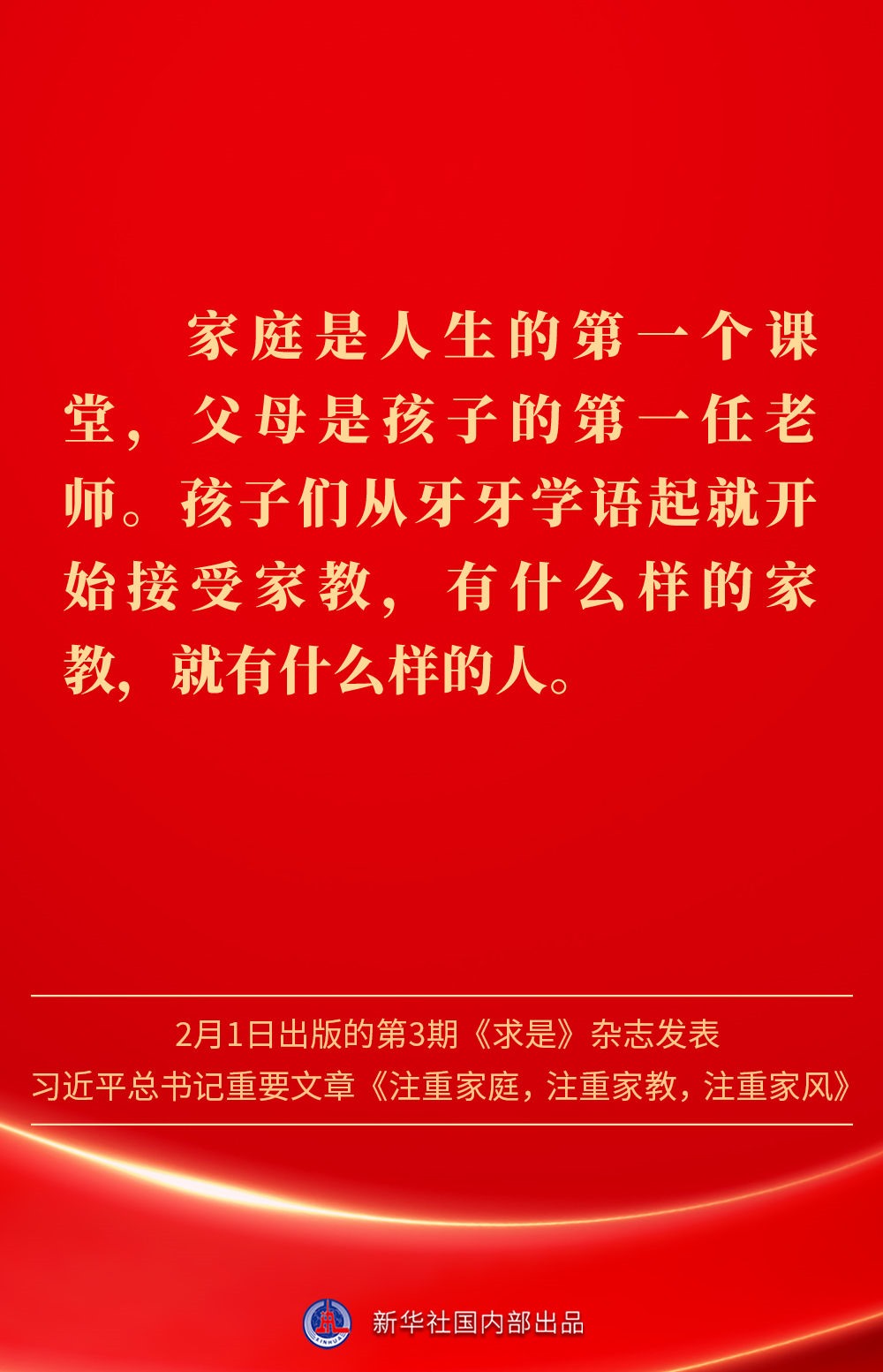 萬家團(tuán)圓共慶新春佳節(jié)之際,2月1日出版的第3期《求是》雜志發(fā)表習(xí)近平總書記重要文章《注重家庭,注重家教,注重家風(fēng)》。為什么要注重家庭、家教、家風(fēng)?如何做好家庭文明建設(shè)?習(xí)近平總書記這樣闡述——