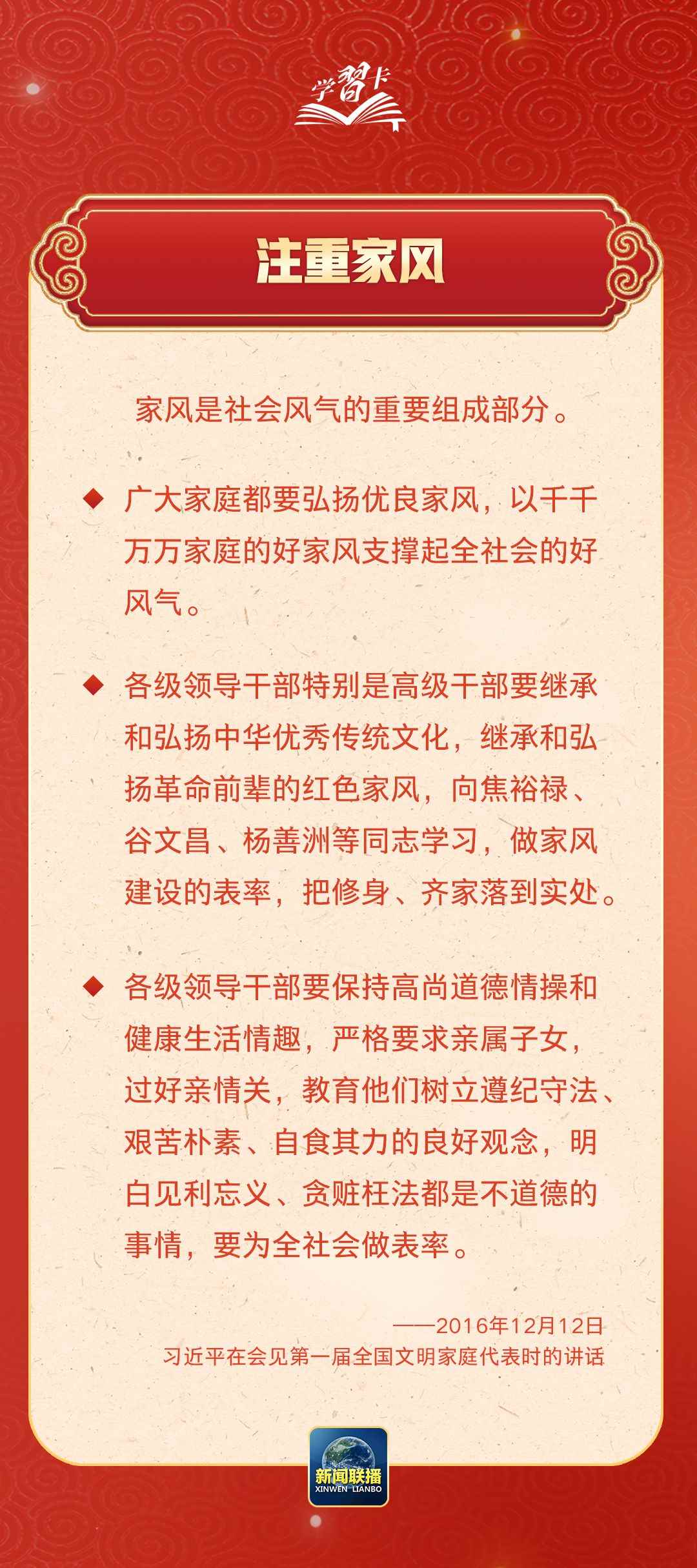 在習(xí)近平總書記心中,家國的分量很重。他多次強調(diào)要重視家庭建設(shè),提倡愛家愛國相統(tǒng)一,指出廣大家庭都要弘揚優(yōu)良家風(fēng),以千千萬萬家庭的好家風(fēng)支撐起全社會的好風(fēng)氣。近日,《求是》雜志發(fā)表習(xí)近平總書記重要文章《注重家庭,注重家教,注重家風(fēng)》,一起學(xué)習(xí)↓