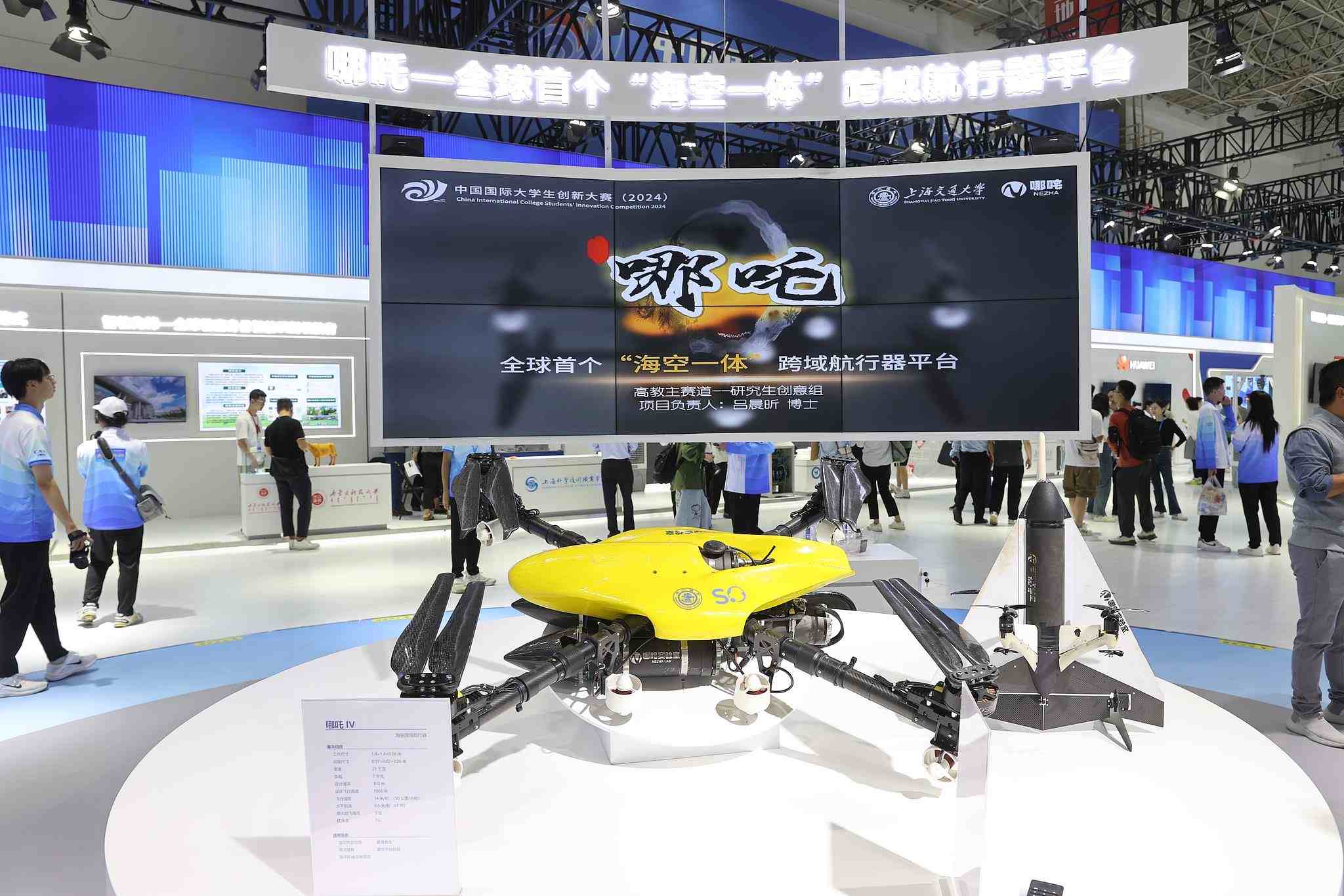 △2024年10月12日至15日,中國國際大學(xué)生創(chuàng)新大賽總決賽及同期活動在上海舉行。來自上海交通大學(xué)的“哪吒——全球首個‘海空一體’跨域航行器平臺”項目奪得冠軍。