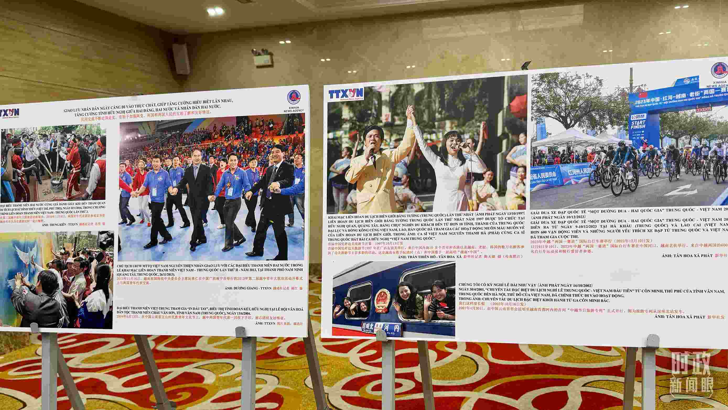 △ 訪問期間,習(xí)近平總書記觀看的中越建交75周年圖片展。(總臺央視記者李增仁拍攝)