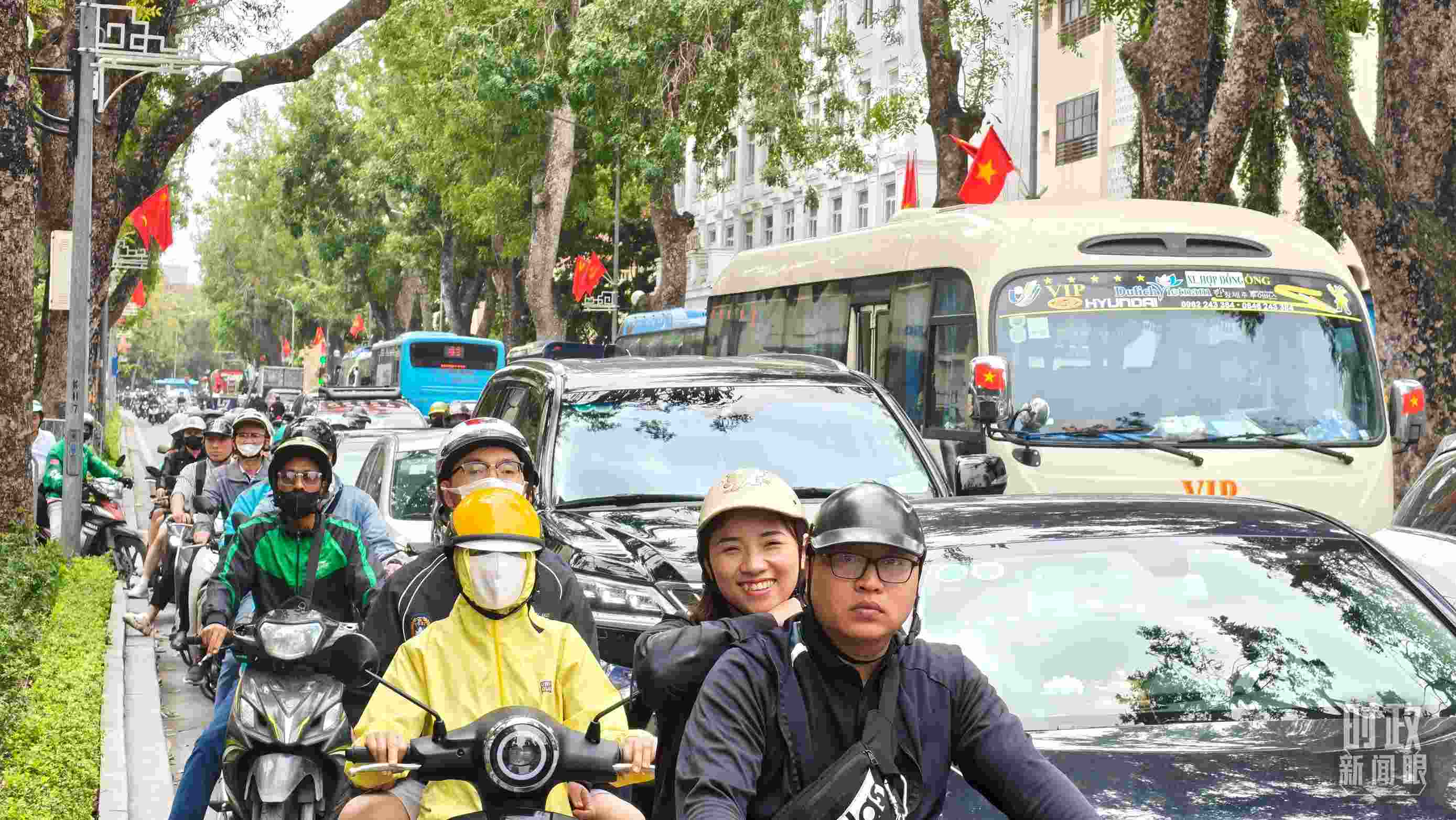 △ 民眾沿途揮舞中越國旗。(總臺央廣記者劉會民拍攝)