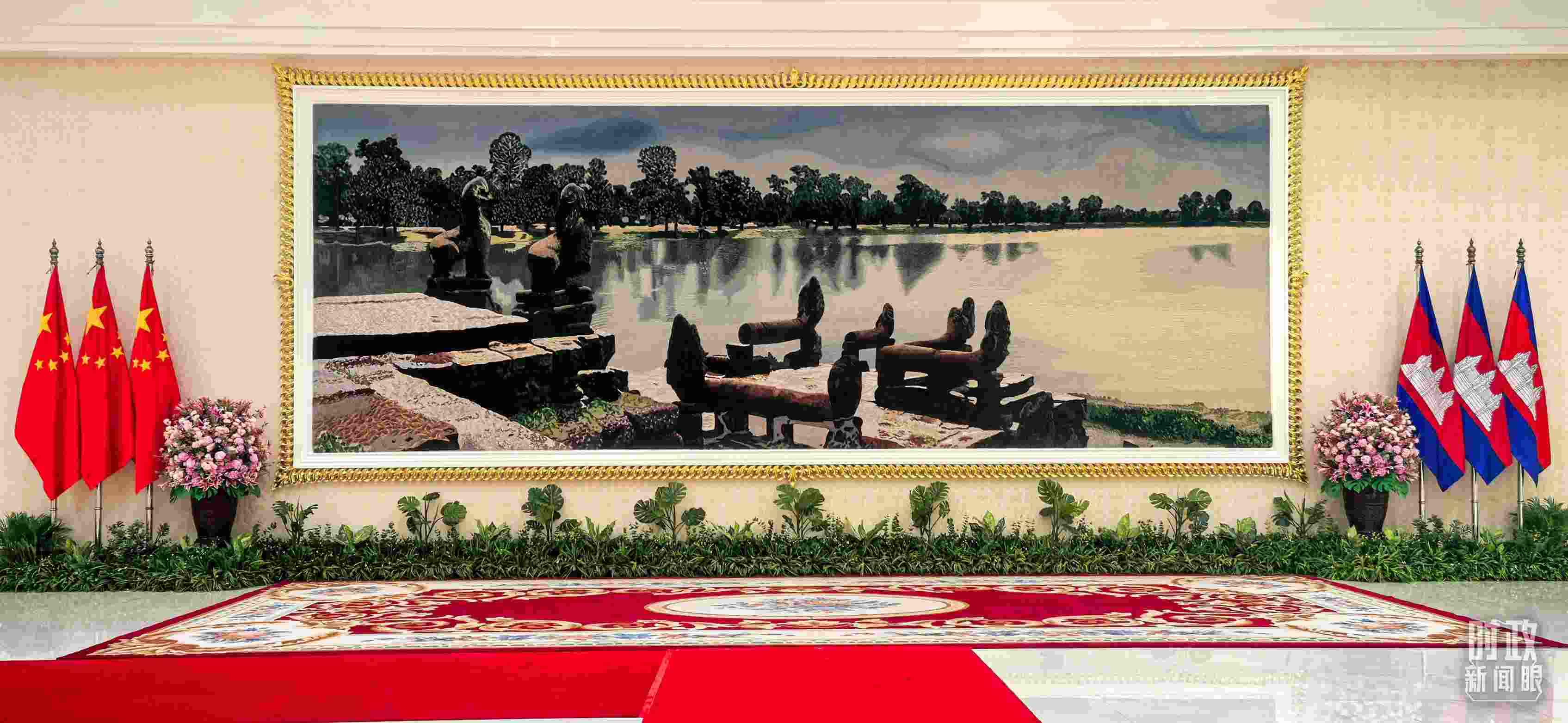 △習(xí)主席會(huì)見洪森前的合影現(xiàn)場。(總臺(tái)央視記者范凱拍攝)