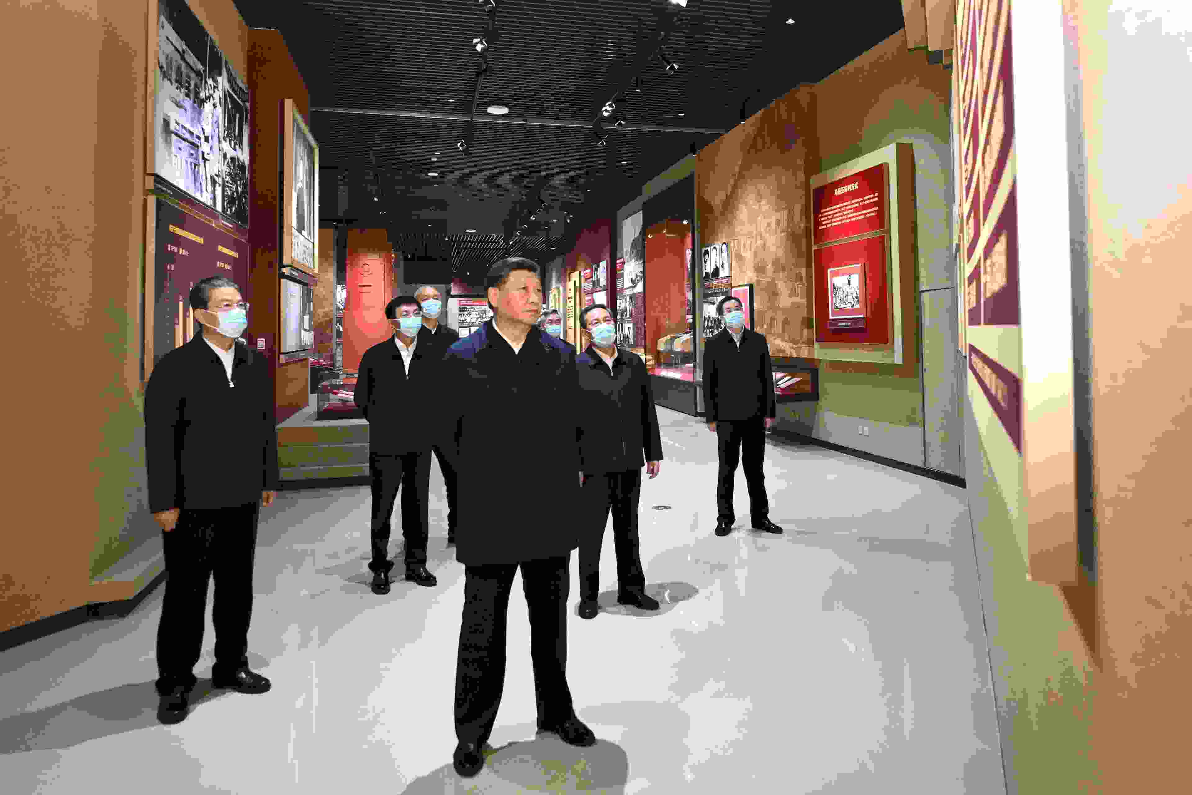 2022年10月27日,習(xí)近平總書記在延安革命紀(jì)念館,參觀《偉大歷程——中共中央在延安十三年歷史陳列》。新華社記者 燕雁 攝