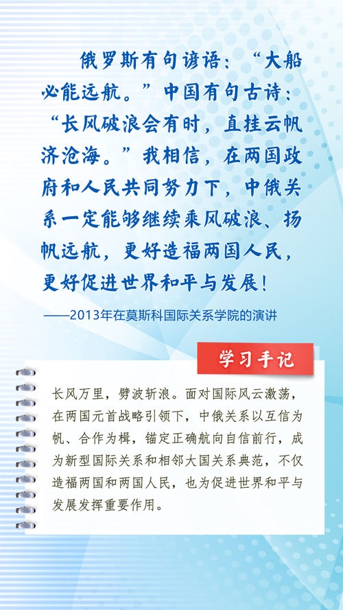 我們一起來學(xué)習品讀這些飽含哲思的論述,從中感悟新時代中俄關(guān)系在復(fù)雜的外部環(huán)境下堅毅前行之道,感悟習近平主席作為大黨大國領(lǐng)袖、世界級領(lǐng)袖的時代擔當與天下情懷。