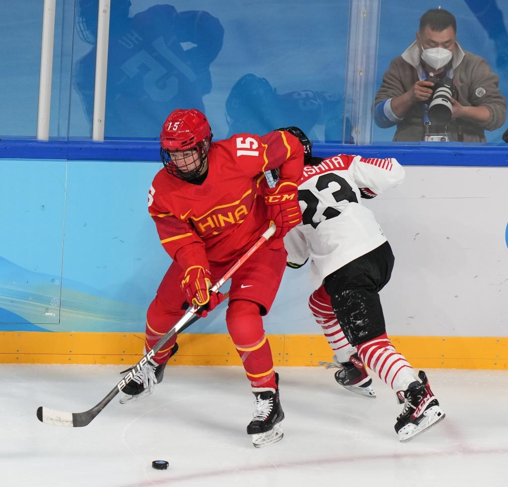 2月6日,中國(guó)隊(duì)球員張喜芳(右)在比賽中。新華社記者 孟永民 攝