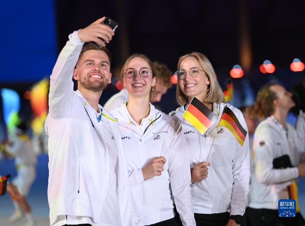 7月28日,德國(guó)大學(xué)生體育代表團(tuán)在開(kāi)幕式上入場(chǎng)。