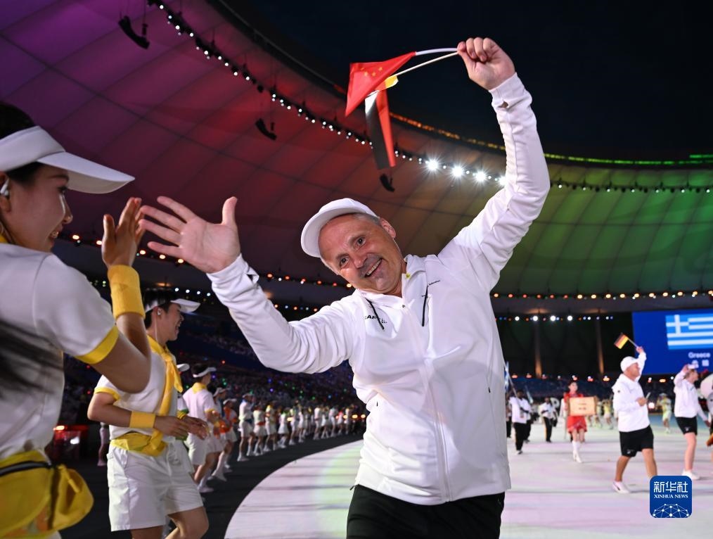 7月28日,中國(guó)大學(xué)生體育代表團(tuán)在開(kāi)幕式上入場(chǎng)。