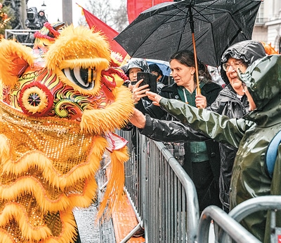 新年伊始,英國首都倫敦下起了雨。盡管天公不作美,人們迎接新年的熱情不減,第39屆倫敦新年巡游如期進行,這也是英國當(dāng)?shù)匦履陸c典的重要組成部分。在來自世界各地的花車表演中,倫敦華埠商會方隊作為唯一的華人方隊,舞龍舞獅、花車表演風(fēng)采十足。