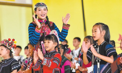 創(chuàng)業(yè)之初,我?guī)е嚼锏暮⒆觽儗W唱哈尼古歌,學跳樂作舞。有人質(zhì)疑:“教這些老掉牙的東西,能有什么前途?”但我覺得,民族文化瑰寶蘊含著獨特的魅力,只是尚未被更多人看見。教學中,我自己也經(jīng)常向民間藝人請教,提煉非遺歌舞中動作的精髓、代表性的音樂段落,再加以創(chuàng)新發(fā)展。