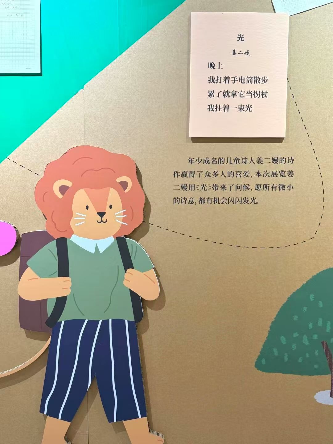 本次展覽匯集全國各地少年兒童創(chuàng)作的百余首詩歌,其中包括經(jīng)嚴(yán)格評審產(chǎn)生的35篇優(yōu)秀作品。展覽分為“家在水草豐茂的地方”“為萬物輕聲命名”“原來這就是長大呀”“未來花正開”四個(gè)單元,從描繪勒勒車轍蜿蜒的稚趣短句,到追問星星為何眨眼的天真遐想,再到幻想成為箭矢破浪飛馳的斑斕夢境,童心與詩意在展覽中浪漫相遇,開啟了一場屬于孩子們的詩歌盛會(huì)。