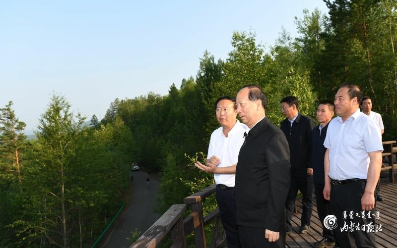 7月7日,自治區(qū)黨委書記、人大常委會主任石泰峰來到呼倫貝爾市白鹿島,調(diào)研生態(tài)保護(hù)建設(shè)情況。內(nèi)蒙古日報(bào)社融媒體記者 袁永紅 攝