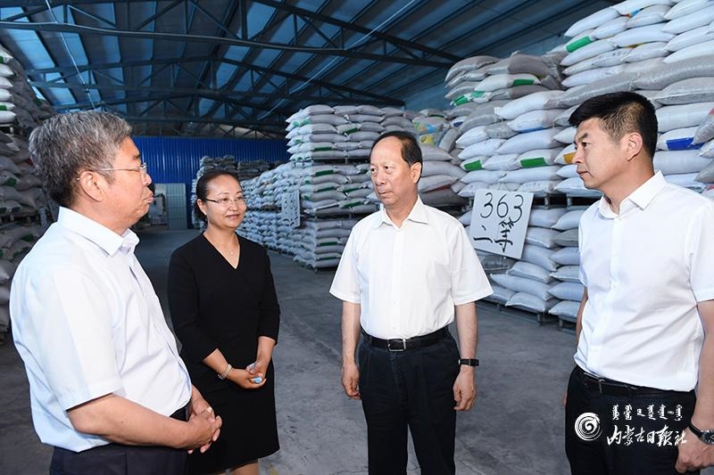 7月14日,自治區(qū)黨委書(shū)記、人大常委會(huì)主任石泰峰深入烏蘭察布市四子王旗景欣農(nóng)業(yè)有限公司,了解生產(chǎn)經(jīng)營(yíng)及帶貧增收情況。內(nèi)蒙古日?qǐng)?bào)社融媒體記者 袁永紅 攝