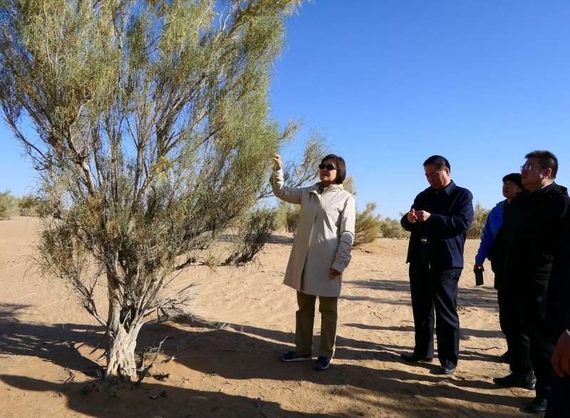 10月5日,自治區(qū)黨委副書記、自治區(qū)主席布小林到塔木素萬(wàn)畝天然梭梭林基地調(diào)研。李和善 攝