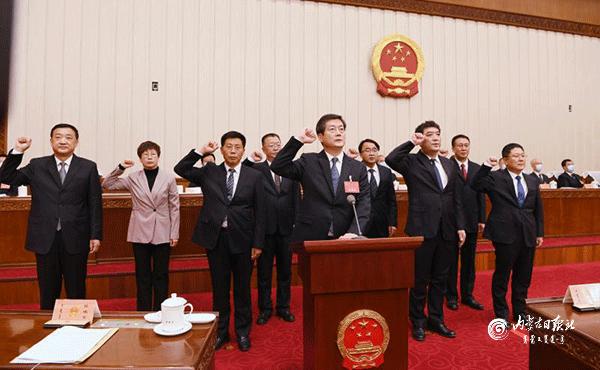 12月14日上午,自治區(qū)十三屆人大常委會第三十二次會議舉行了憲法宣誓儀式。自治區(qū)黨委書記、人大常委會主任石泰峰主持并監(jiān)誓。圖為新任職人員在依法進(jìn)行憲法宣誓。 內(nèi)蒙古日報社融媒體記者 袁永紅 攝