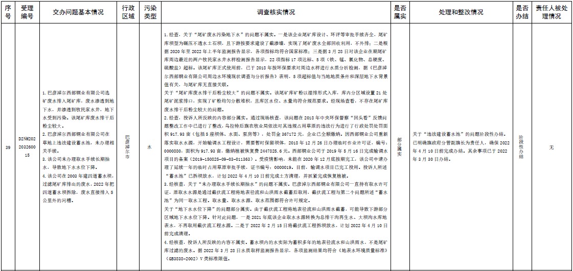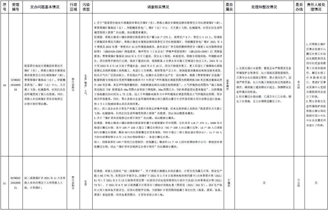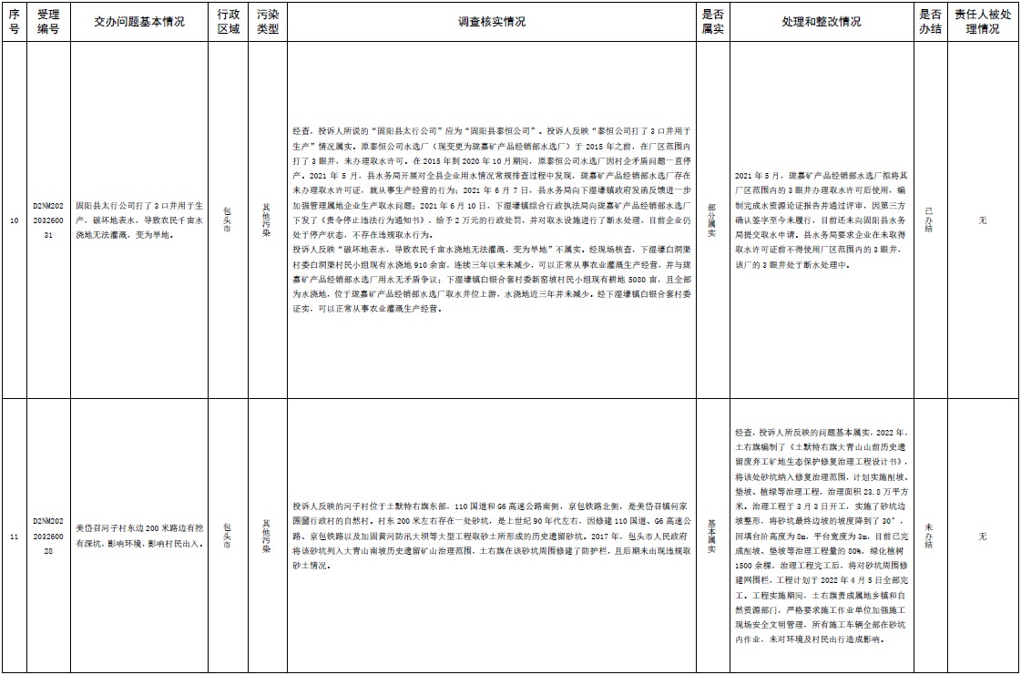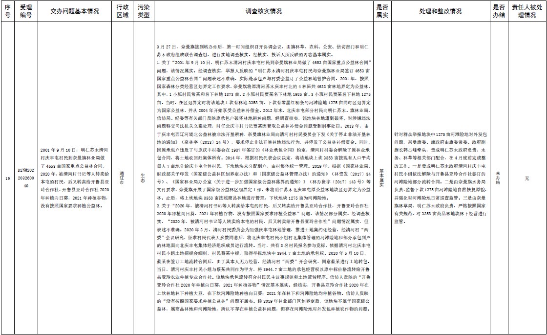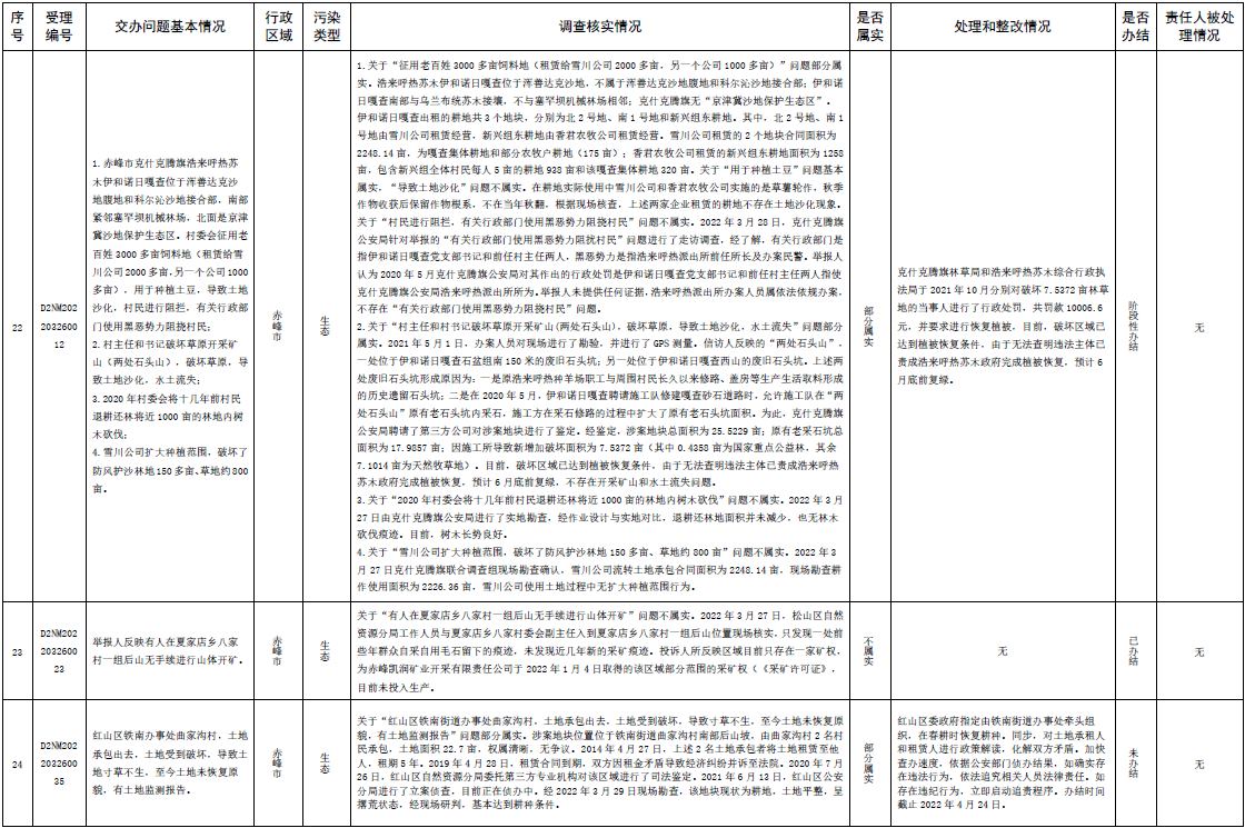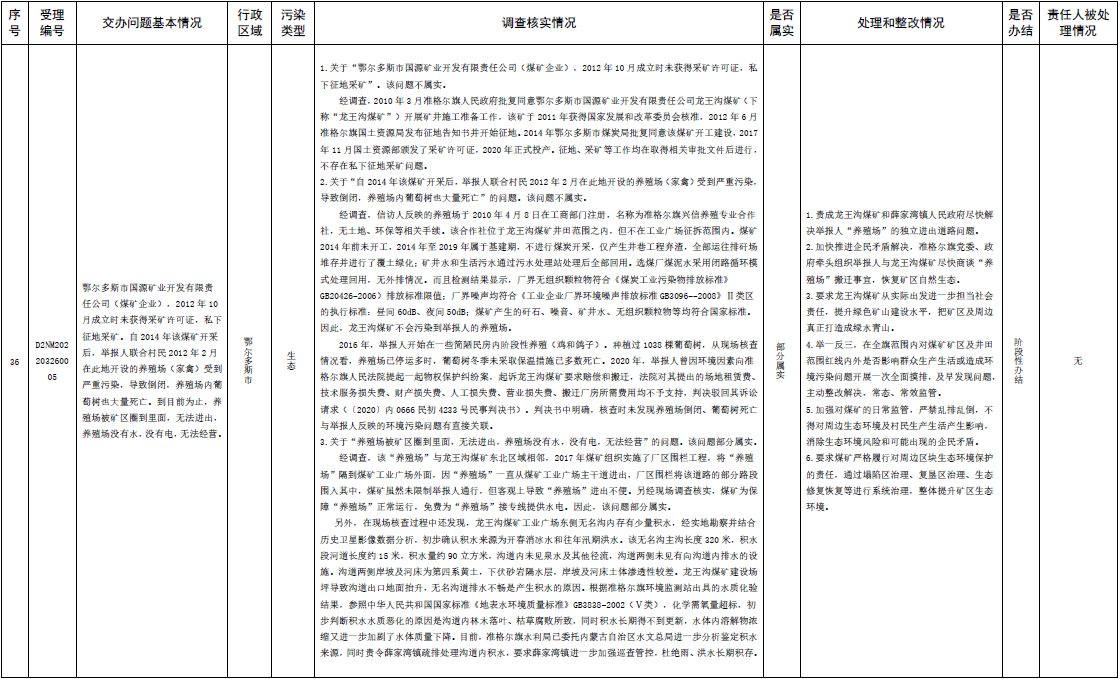 中央第三生態(tài)環(huán)境保護督察組交辦內(nèi)蒙古第二批42件群眾信訪舉報件辦理情況