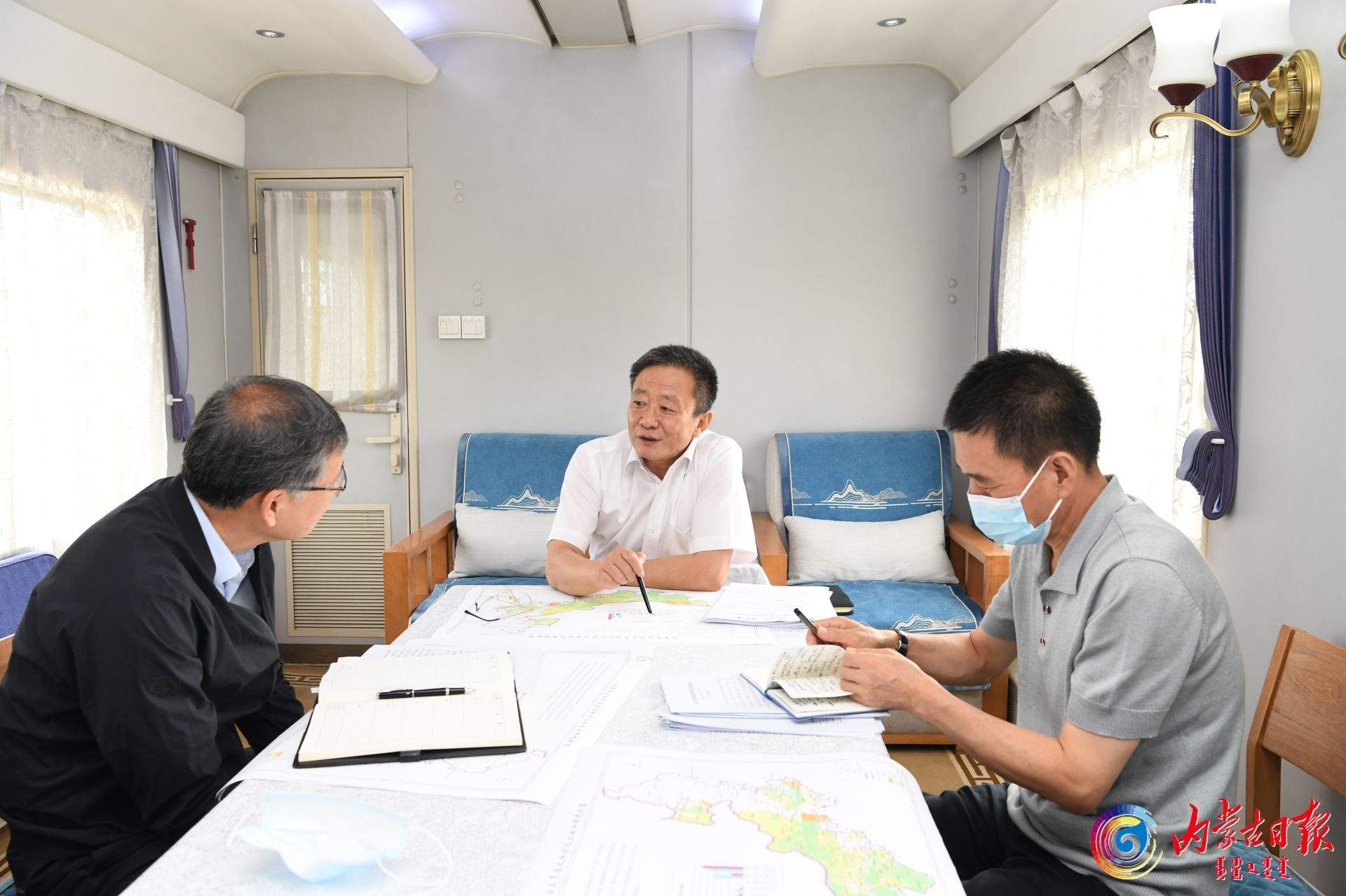 8月26日,自治區(qū)黨委書記孫紹騁在列車上認真聽取自治區(qū)有關(guān)部門關(guān)于全區(qū)防沙治沙工作情況匯報。內(nèi)蒙古日報社融媒體記者袁永紅攝