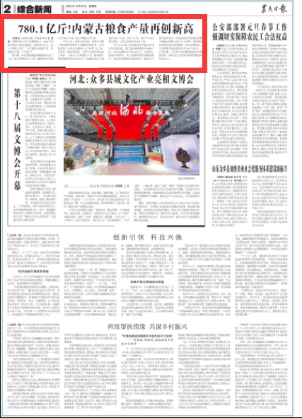 【央媒聚焦內(nèi)蒙古】農(nóng)民日報:780.1億斤!內(nèi)蒙古糧食產(chǎn)量再創(chuàng)新高