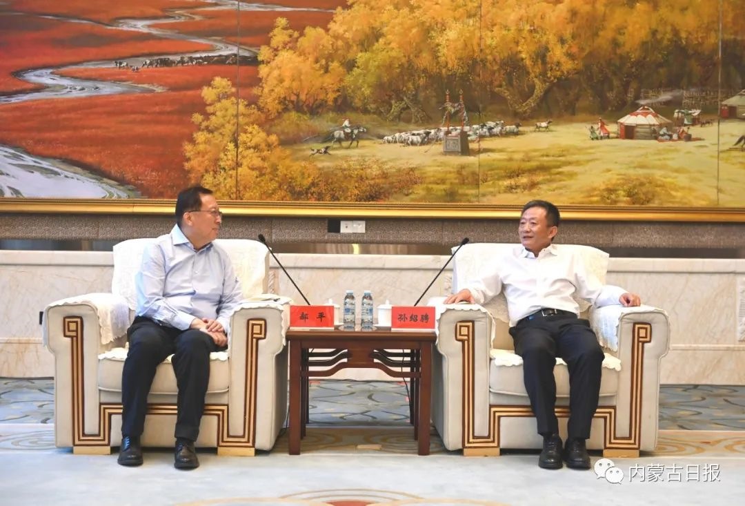 會見中,孫紹騁對郝平一行表示歡迎,對北京大學長期以來給予內蒙古的大力支持表示感謝。他說,當前,全區(qū)上下正在深入學習貫徹習近平總書記在內蒙古考察時的重要指示精神,努力辦好完成“五大任務”和全方位建設“模范自治區(qū)”兩件大事。內蒙古的發(fā)展優(yōu)勢很多,同時短板也不少,其中科技和人才是最大的短板。內蒙古與北京大學可以合作的領域很廣,成立北京大學鄂爾多斯能源研究院開了一個好頭,希望雙方進一步拓展合作空間,實現(xiàn)互利共贏。他說,內蒙古區(qū)位優(yōu)勢獨特,歷史上就是“草原絲綢之路”和“萬里茶道”的重要樞紐和通道,習近平總書記這次考察時叮囑我們要“更好融入國內國際雙循環(huán)”“在聯(lián)通國內國際雙循環(huán)中發(fā)揮更大作用”,希望北京大學幫助我們加強這方面的戰(zhàn)略研究,多支高招,助力我區(qū)做好開放發(fā)展這篇大文章。郝平說,前不久習近平總書記親臨內蒙古考察,充分體現(xiàn)對內蒙古的關心厚愛,我們備受鼓舞。在簡要介紹北京大學與內蒙古的合作情況后,他表示,北京大學將充分發(fā)揮自身優(yōu)勢,緊緊圍繞貫徹落實習近平總書記重要指示精神,進一步深化與內蒙古的務實合作,不斷拓展合作領域,為推動內蒙古經(jīng)濟社會發(fā)展貢獻力量。