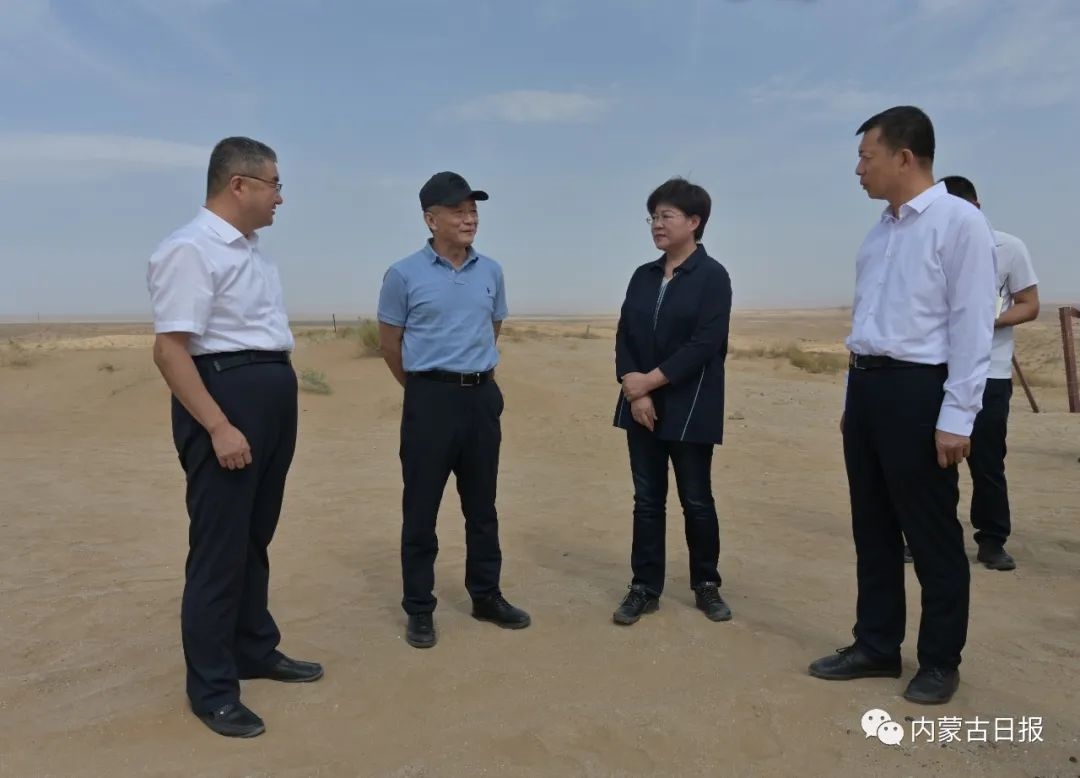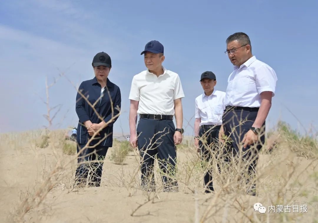 8月2日,自治區(qū)黨委書記孫紹騁來到阿拉善右旗巴丹吉林沙漠和騰格里沙漠交匯處的雅布賴治沙項目區(qū),調(diào)研巴丹吉林沙漠東南緣荒漠化綜合治理情況。記者馬建荃攝