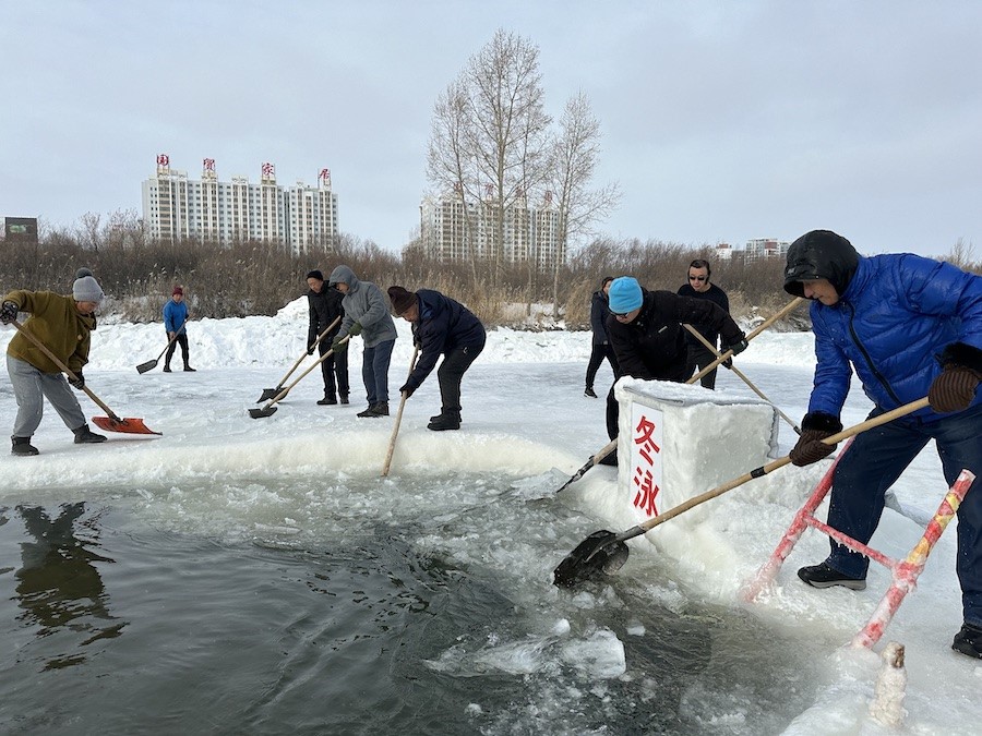 北疆新聞呼倫貝爾1月14日消息(記者 楊凈毓 李文華)1月中旬的內(nèi)蒙古呼倫貝爾,冰天雪地中,海拉爾冬泳協(xié)會(huì)在零下21℃的溫度下,鑿冰冬泳祝福第十四屆全國(guó)冬季運(yùn)動(dòng)會(huì)召開。