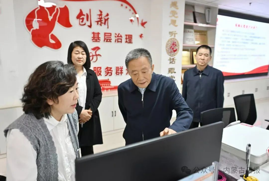 5月13日,自治區(qū)黨委書記孫紹騁走進臨河區(qū)金川街道江林社區(qū)便民服務(wù)大廳和黨群服務(wù)中心,同社區(qū)工作人員深入交流,了解社區(qū)工作內(nèi)容和減負效果。草原云·內(nèi)蒙古新聞網(wǎng)記者 馬建兵 攝