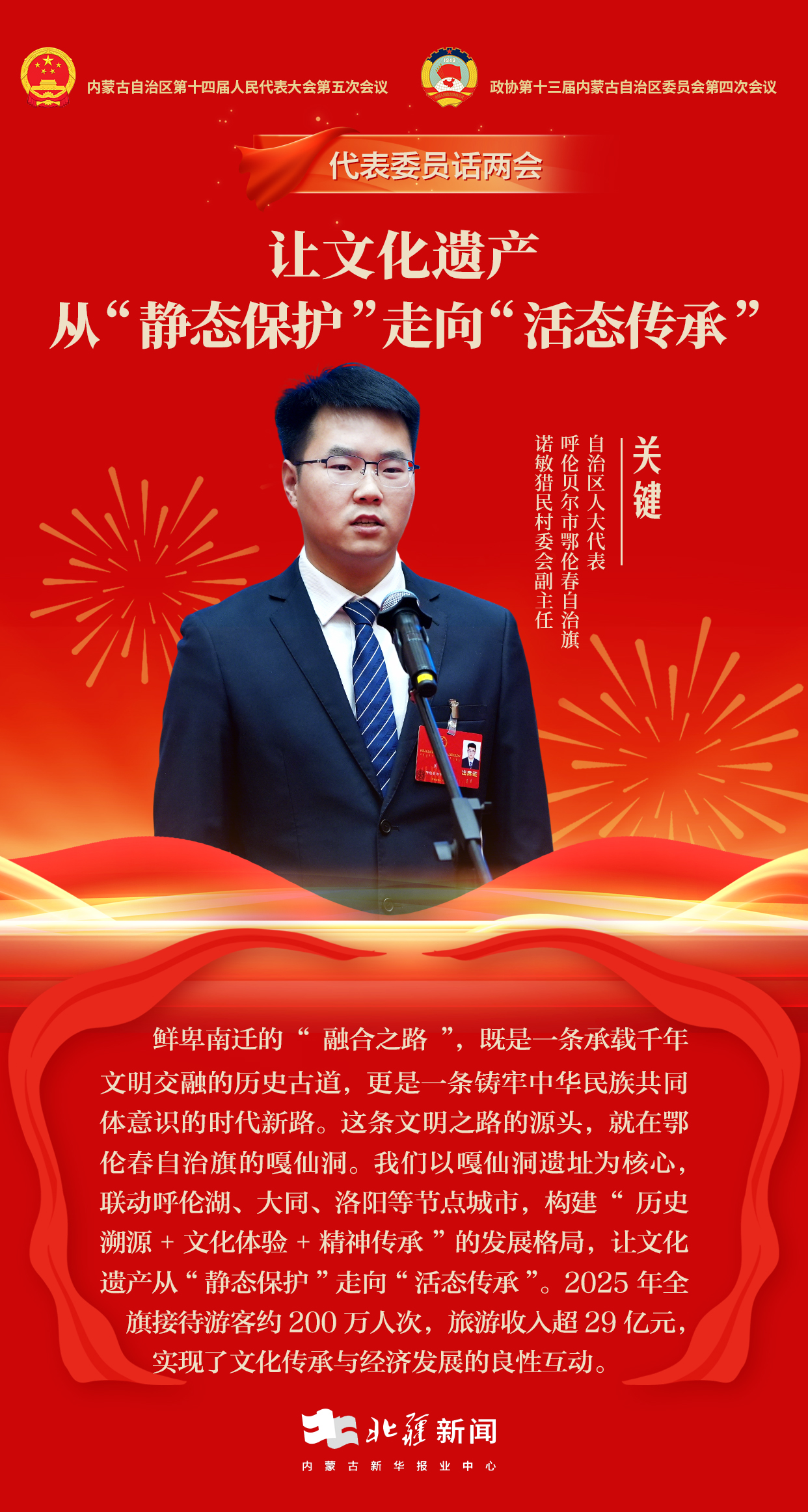關(guān)鍵表示,當(dāng)?shù)爻掷m(xù)深化拓跋鮮卑歷史研究,通過考古實(shí)證、史料梳理闡釋“融合之路”的歷史意義;打造拓跋鮮卑姓氏體驗館、串聯(lián)跨省份自駕線路,推出文創(chuàng)、鮮卑服飾旅拍等體驗項目,開展“做一天鄂倫春人”活動,年內(nèi)超1萬名游客沉浸式體驗非遺技藝與傳統(tǒng)生活;推動文化資源轉(zhuǎn)化,今年該旗接待游客約200萬人次、旅游收入超29億元,實(shí)現(xiàn)文化傳承與經(jīng)濟(jì)發(fā)展雙贏。