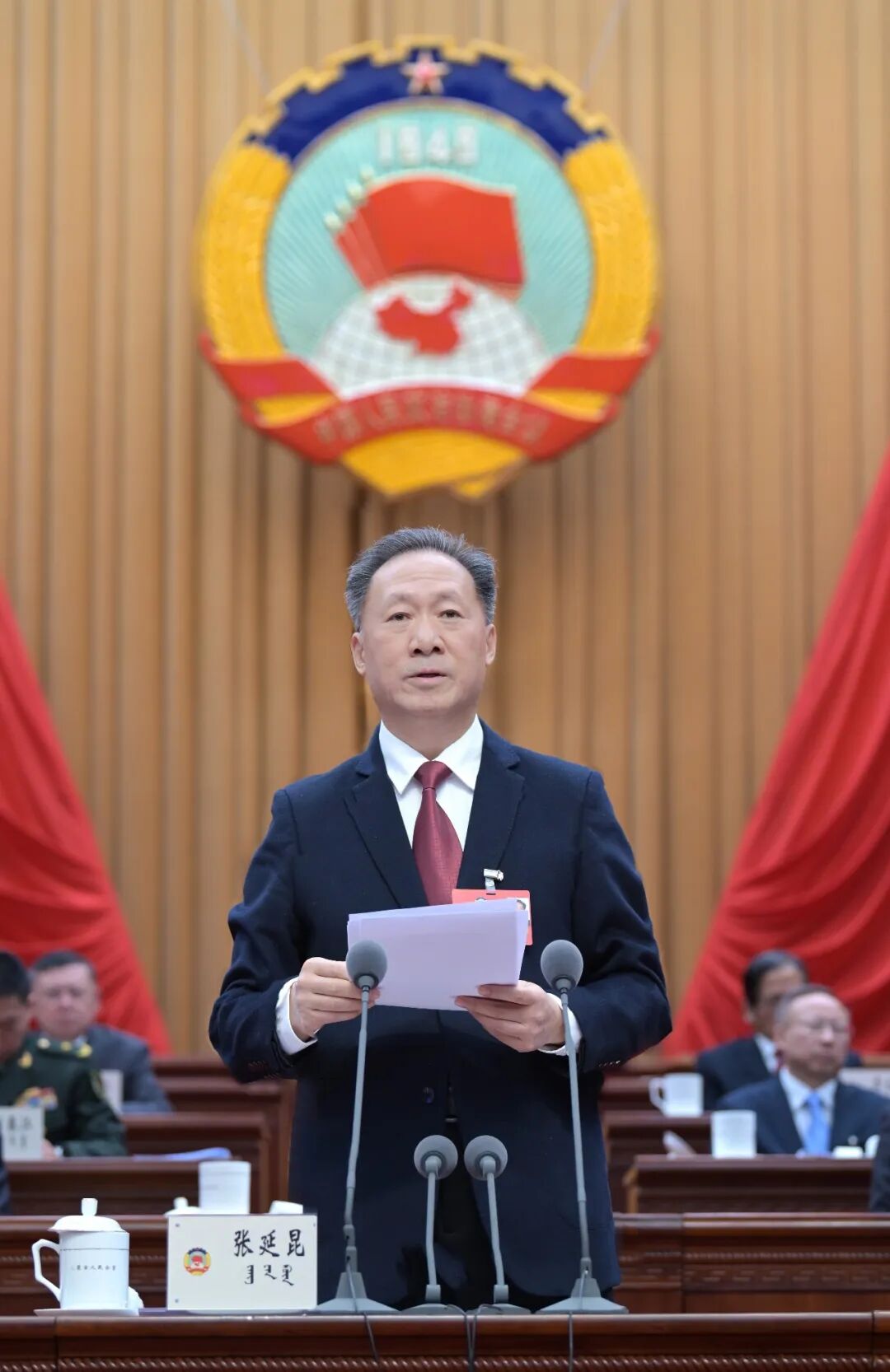 時(shí)光輝、劉爽、孟憲東、黃志強(qiáng)、胡達(dá)古拉、于立新、包獻(xiàn)華、于會(huì)文、陳之常、李東旭、劉春江、張韶春、鄭宏范、丁繡峰、李玉剛、艾麗華、李秉榮、吳艷剛、奇巴圖、鄭光照、代欽、孫俊青、唐毅、楊宗仁、李永君、郭軍、張鈞等在主席臺(tái)就座。