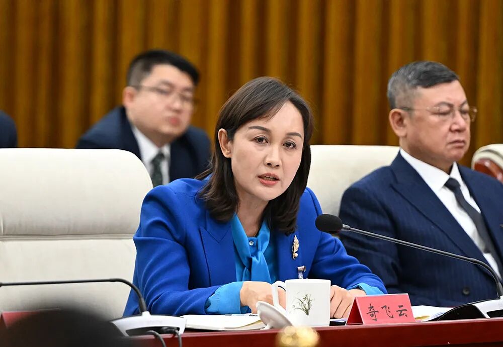 奇飛云代表回答中央廣播電視總臺(tái)記者提問(wèn)。