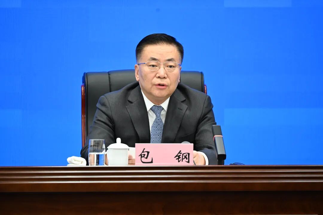 4月21日上午,開局起步“十五五”——在新征程上奮力書寫中國式現(xiàn)代化內(nèi)蒙古新篇章專題新聞發(fā)布會(huì)上,自治區(qū)黨委副書記、自治區(qū)人民政府主席包鋼解讀了《內(nèi)蒙古自治區(qū)國民經(jīng)濟(jì)和社會(huì)發(fā)展第十五個(gè)五年規(guī)劃綱要》。 草原云·內(nèi)蒙古新聞網(wǎng)記者 韓卿立 攝