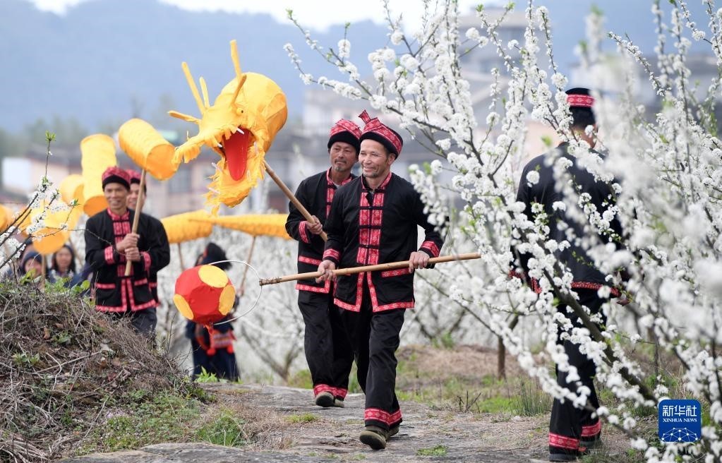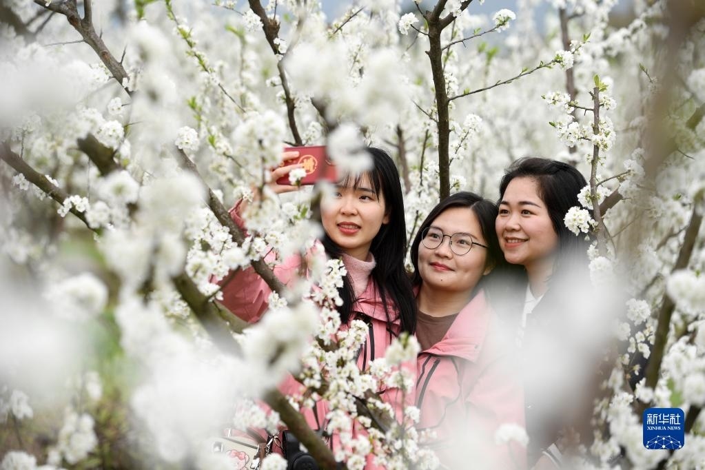 3月17日,在廣西金秀瑤族自治縣忠良鄉(xiāng)巴勒村,游客在賞花拍照。眼下,廣西金秀瑤族自治縣忠良鄉(xiāng)巴勒村李花綻放,吸引游客前來踏春賞花。新華社記者 陸波岸 攝