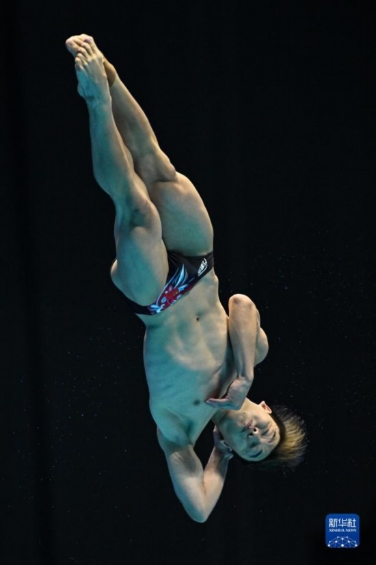7月18日,中國選手鄭九源在三米板項(xiàng)目比賽中。