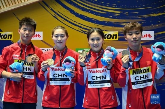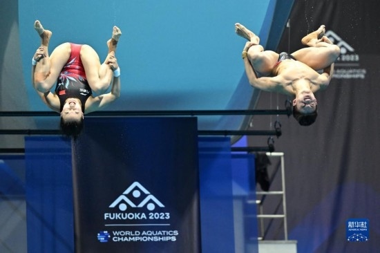 當(dāng)日,在日本福岡舉行的2023年世界游泳錦標(biāo)賽跳水混合團(tuán)體決賽中,中國隊(duì)以489.65分奪冠。