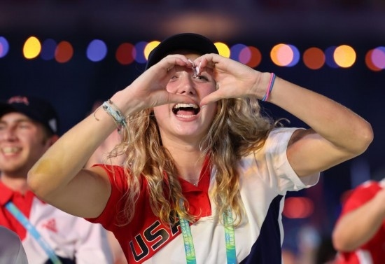 7月28日,美國(guó)大學(xué)生體育代表團(tuán)在開幕式上入場(chǎng)。新華社記者 楊青 攝