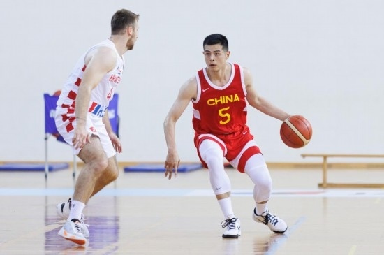 7月15日,在克羅地亞奧帕蒂亞舉行的一場男子籃球友誼賽,中國隊(duì)球員方碩(右)在比賽中運(yùn)球。新華社發(fā)(內(nèi)爾·帕夫萊蒂奇攝)
