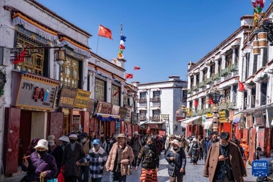 3月14日,拉薩市八廓街游人如織。