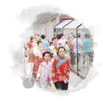 在梧林傳統(tǒng)村落,200多幢承載鄉(xiāng)愁的百年建筑散落其間,游客熙熙攘攘。放眼望去,傳統(tǒng)簪花已成為泉州文旅新風(fēng)尚。無論是在百年榕樹下,還是古厝街巷里,隨處可見頭戴簪花的游客。